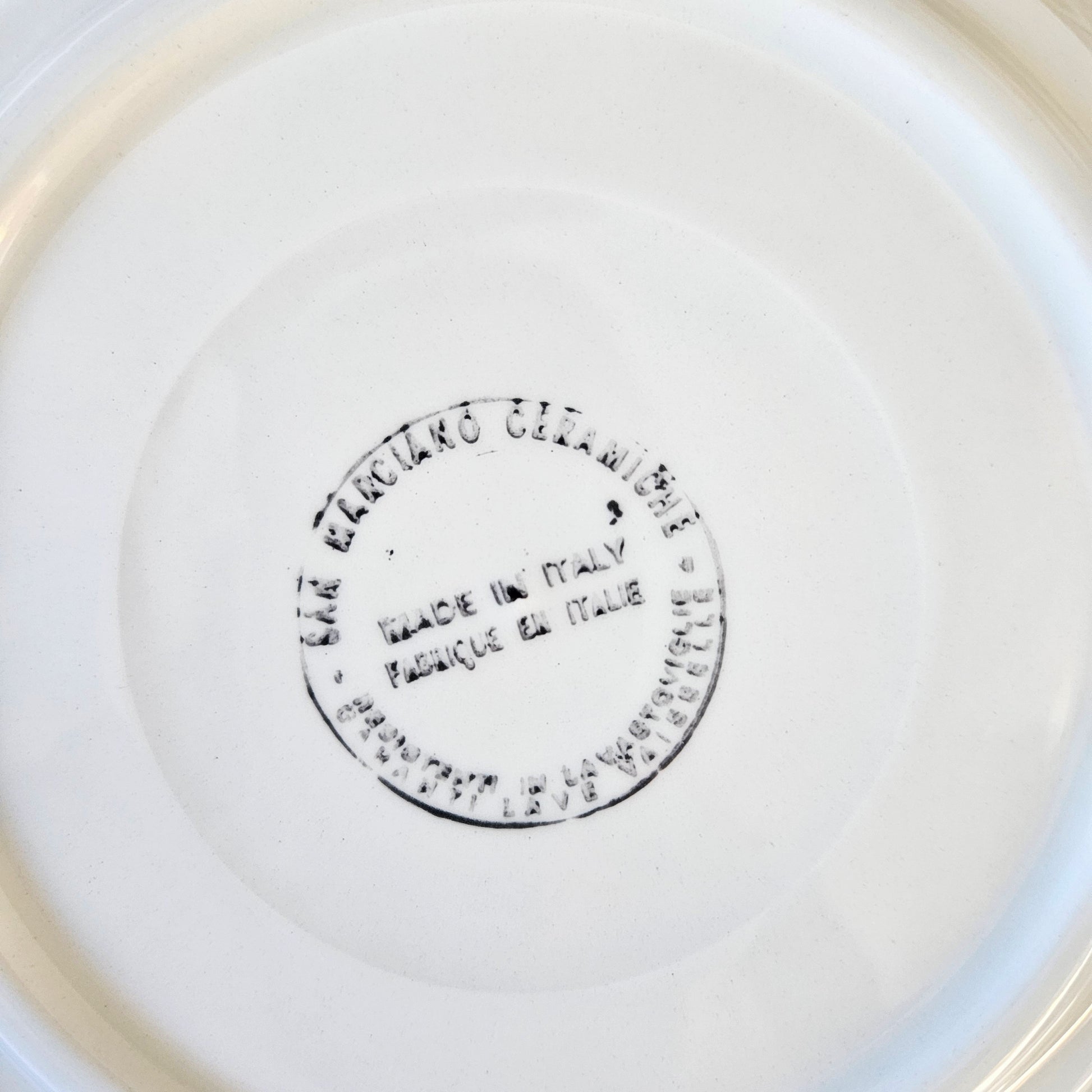 assiette en céramique, lignée jaune, rose et noir, signée San Marciano Ceramiche, faite en Italie
