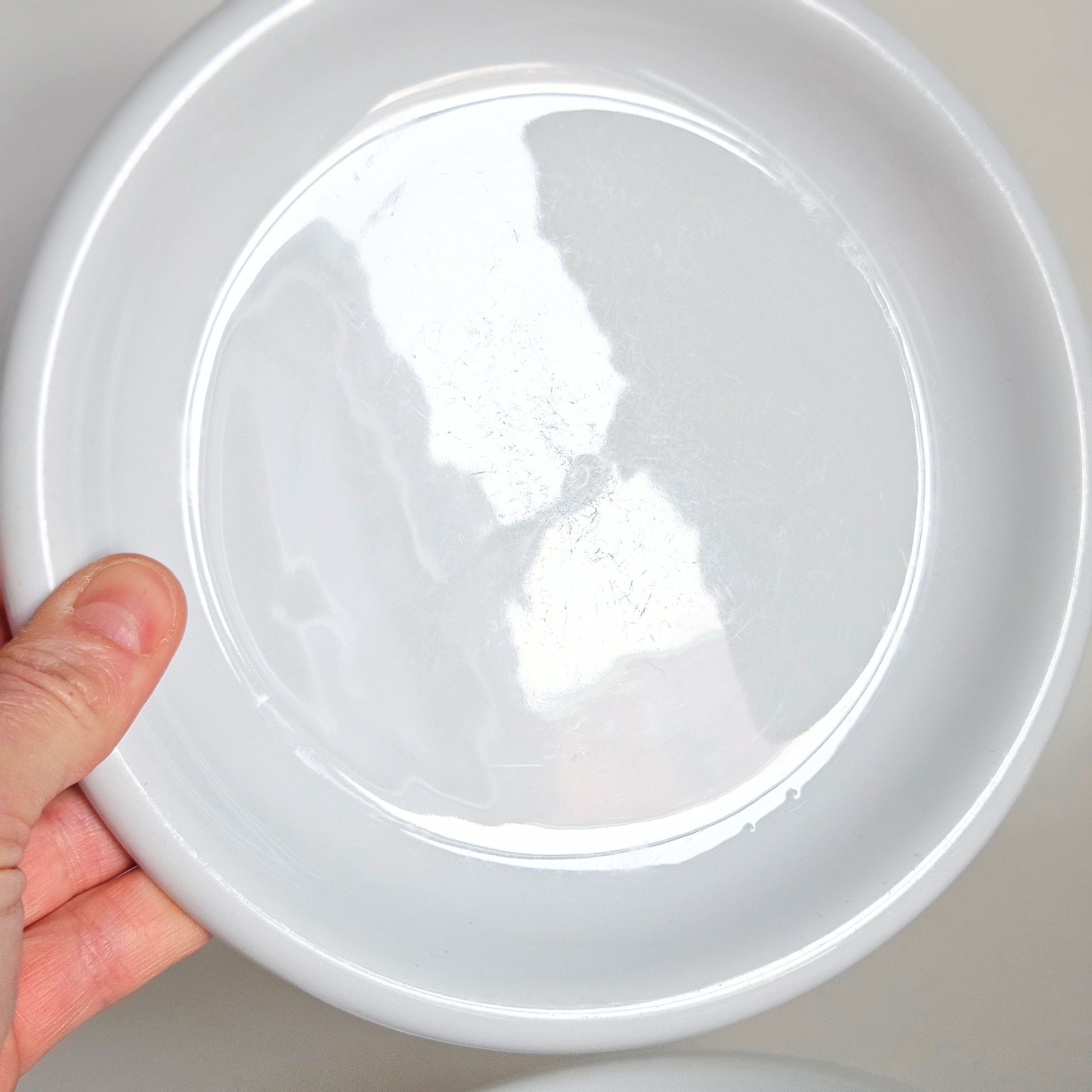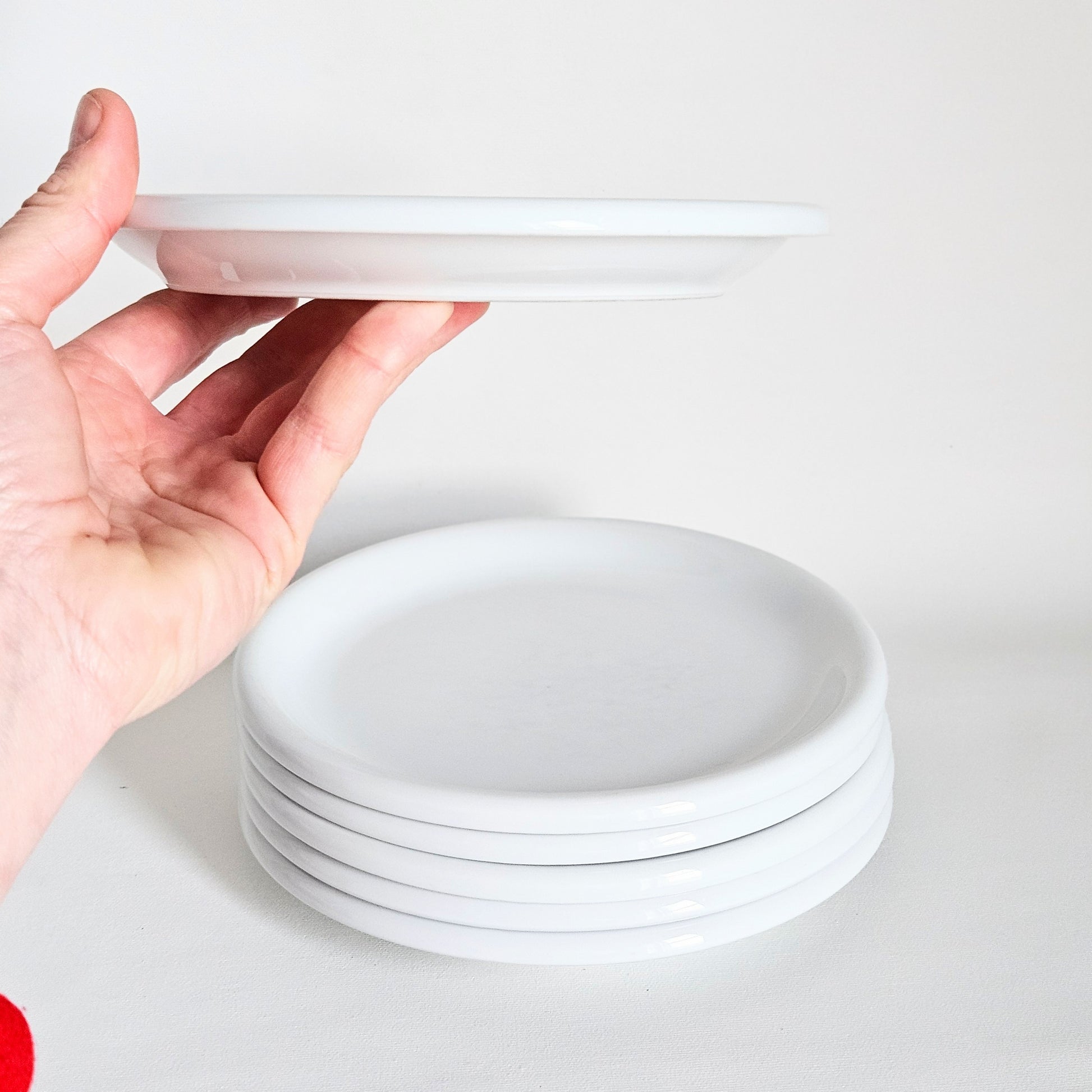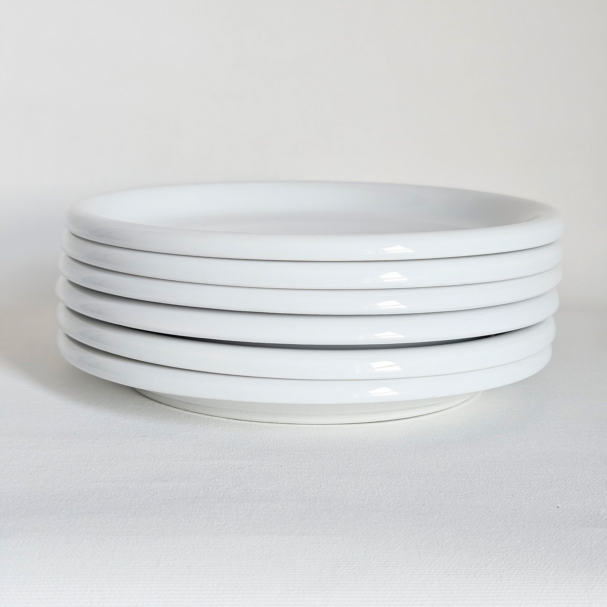 rare ensemble de 6 assiettes à dessert vintage Ikea, en céramique blanche, collection Rondo, produites entre 1977 et fin 1990s, design par Carl-Gustaf Jahnsson, produites par Spa au Portugal