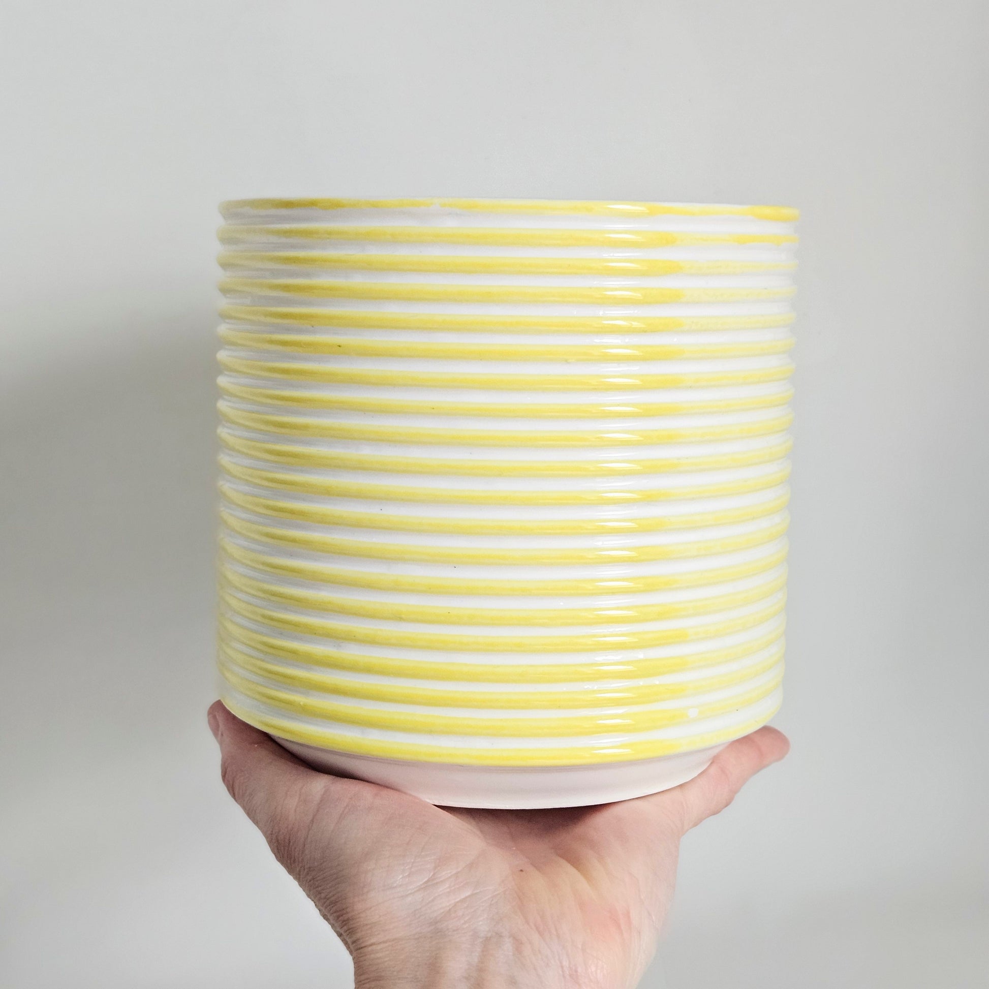 cache-pot à rayures en céramique