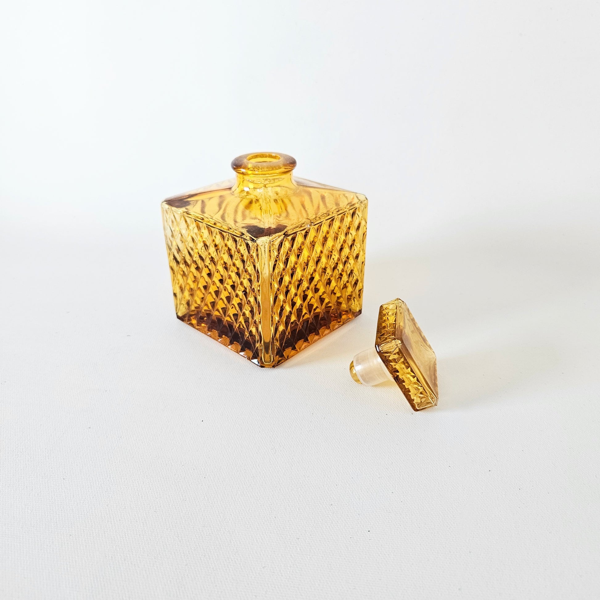 petite carafe vintage à spiritueux en verre biseauté jaune ambré