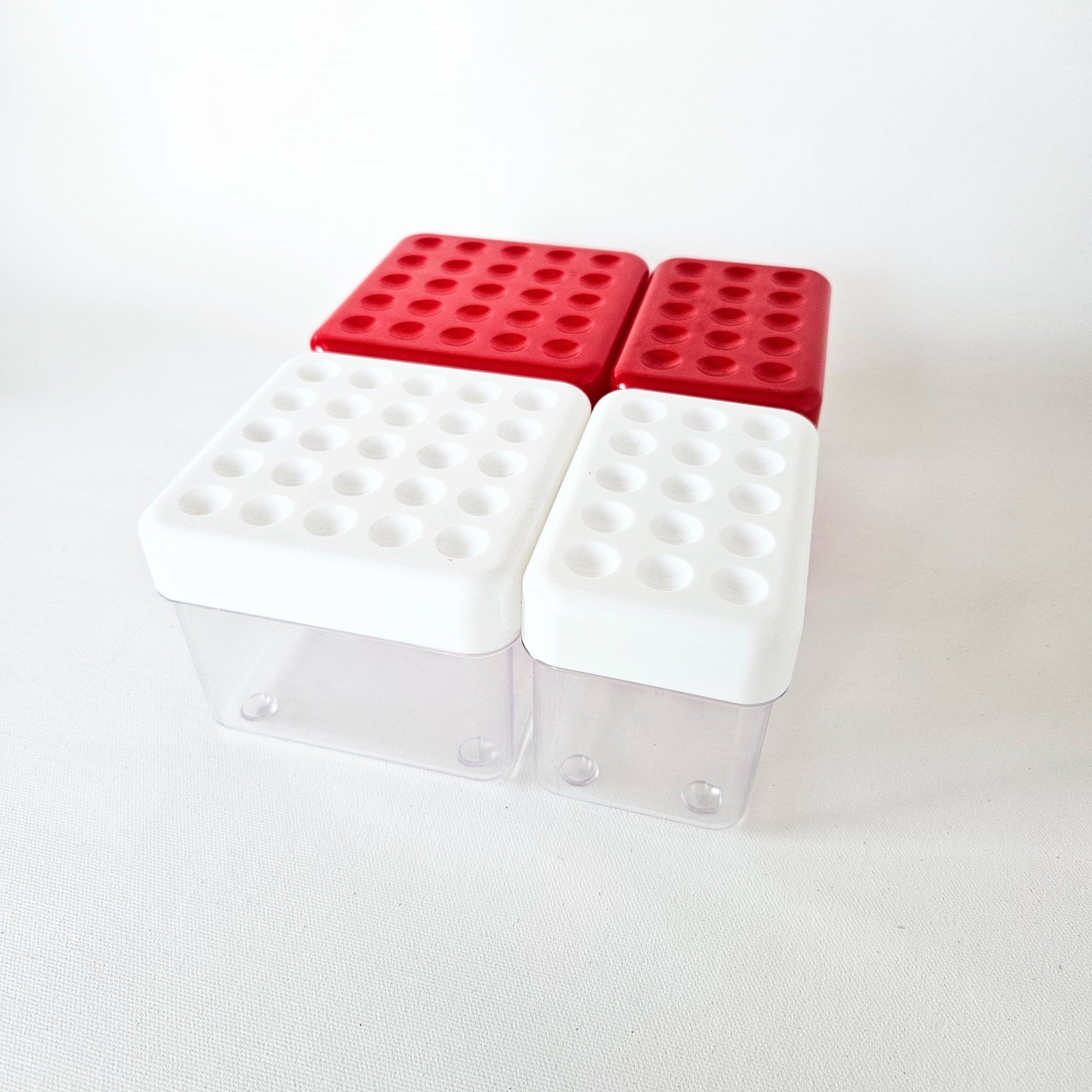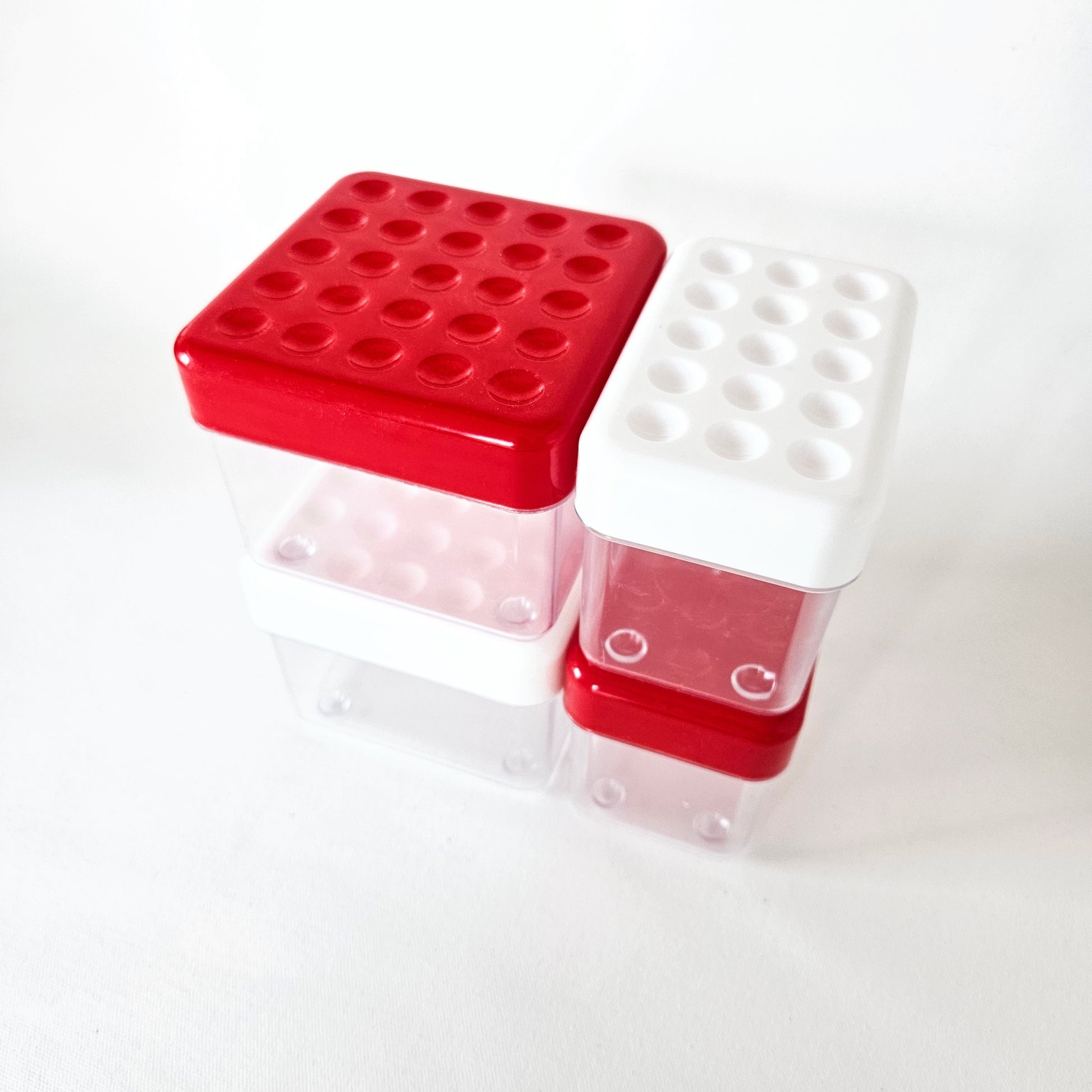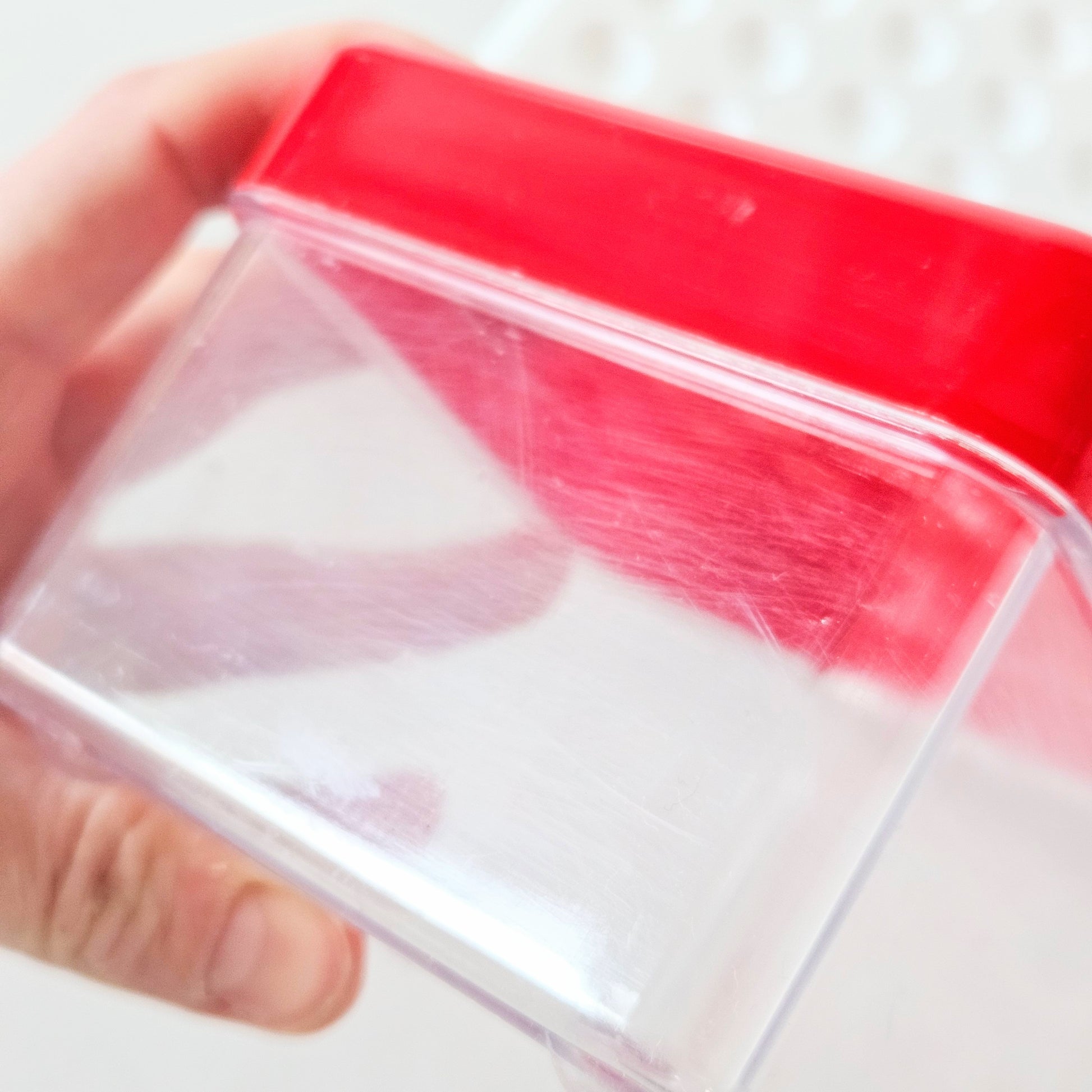 ensemble vintage de 2 boîtes contenants en plastique acrylique transparent et mélamine rouge ou blanc, empilables