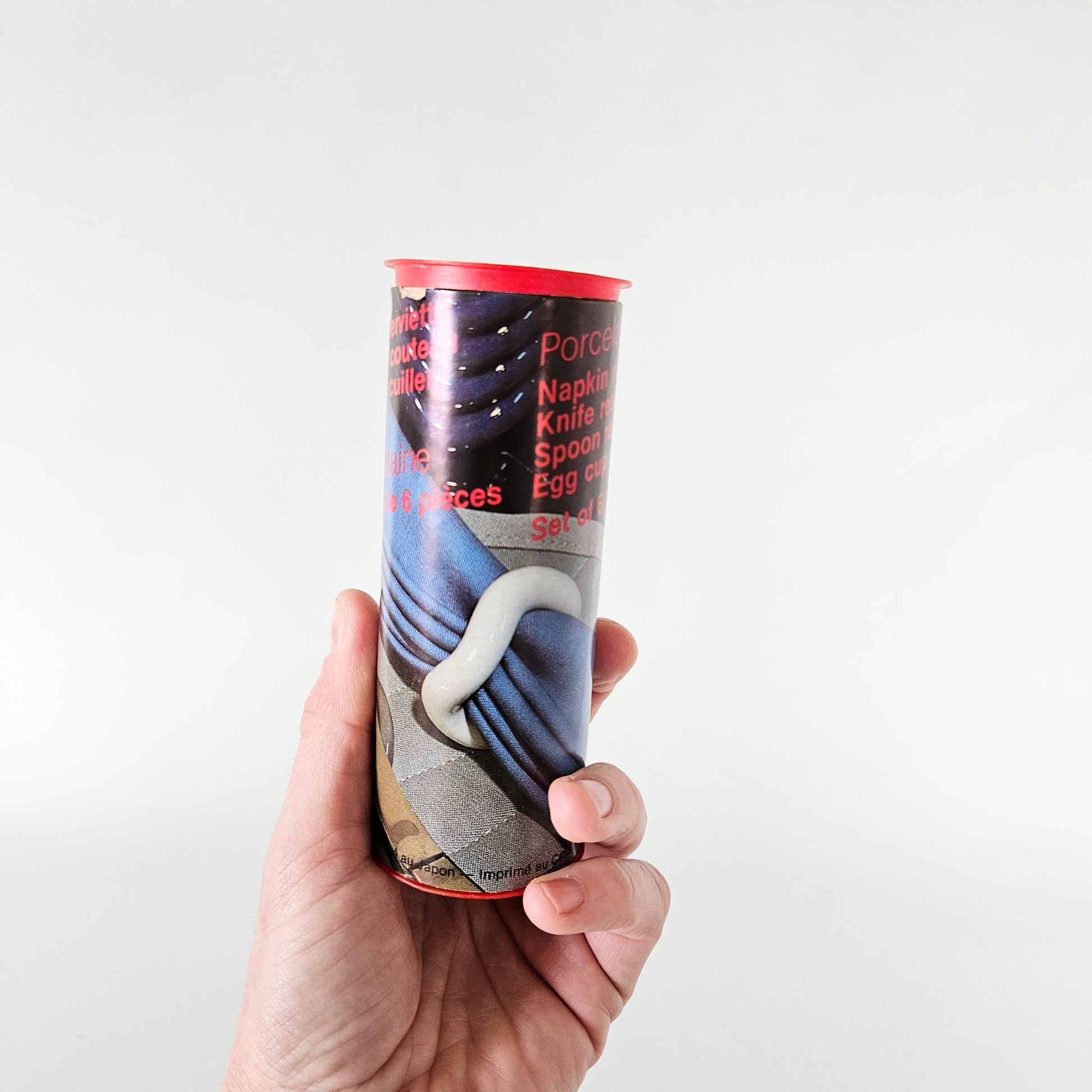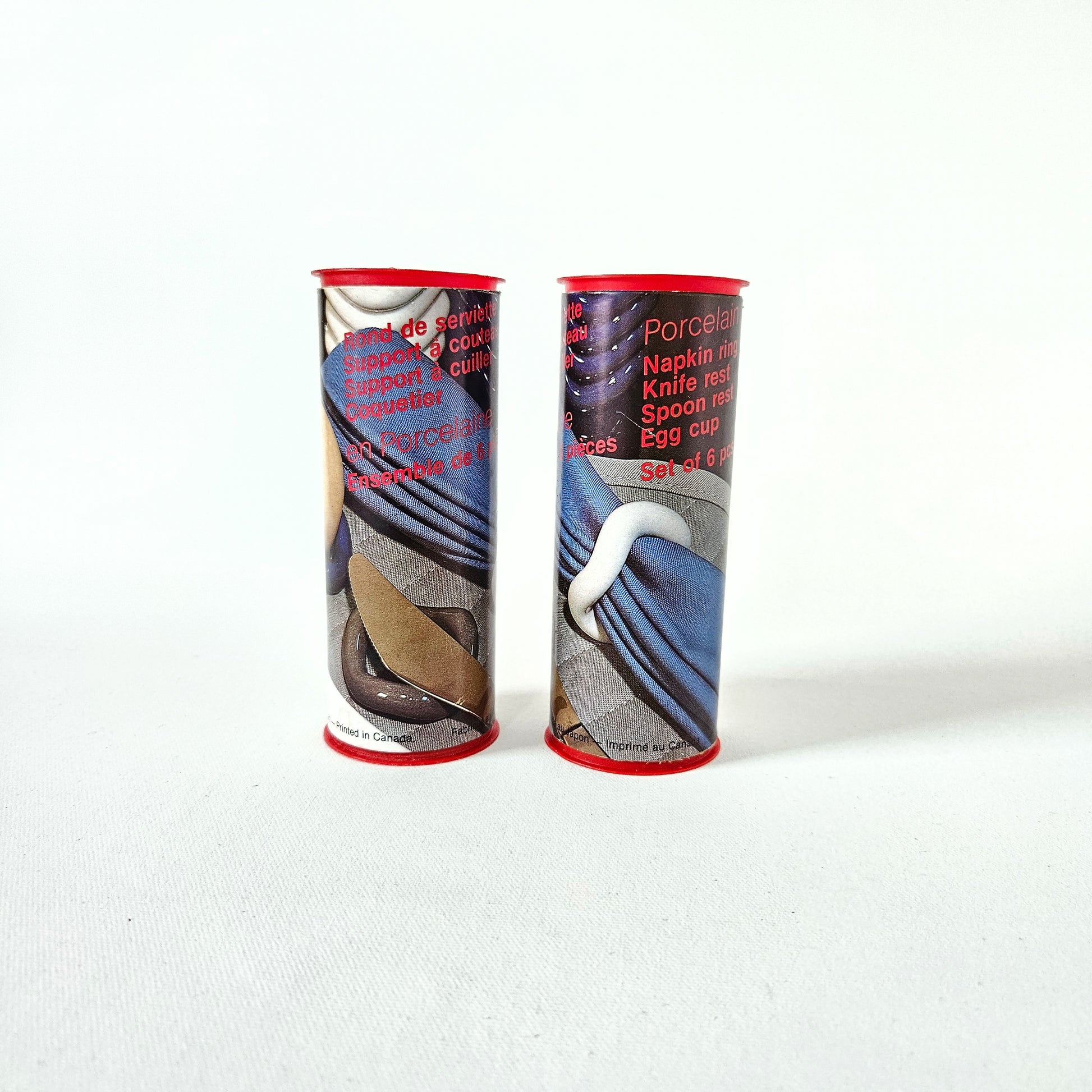 ensemble vintage de 6 coquetiers-ronds de serviette-porte-couteaux/cuillères Wavy en porcelaine, Danesco, faits au Japon