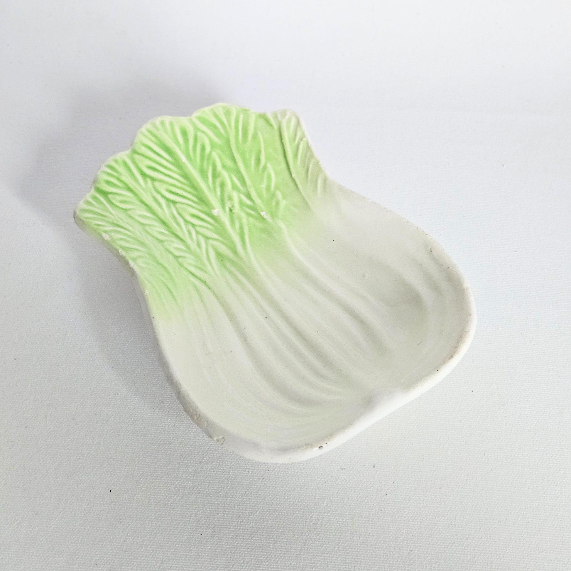 coupelle vintage en céramique bicolore, trompe l'oeil Bok Choy, faite au Brésil