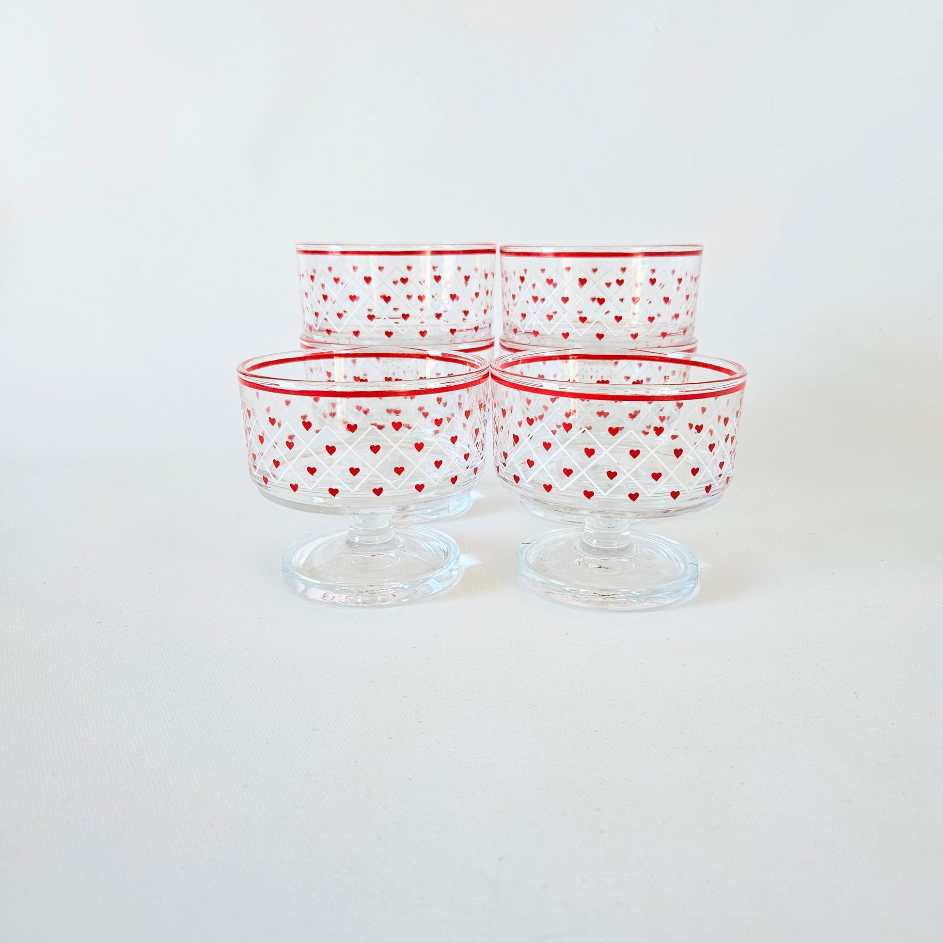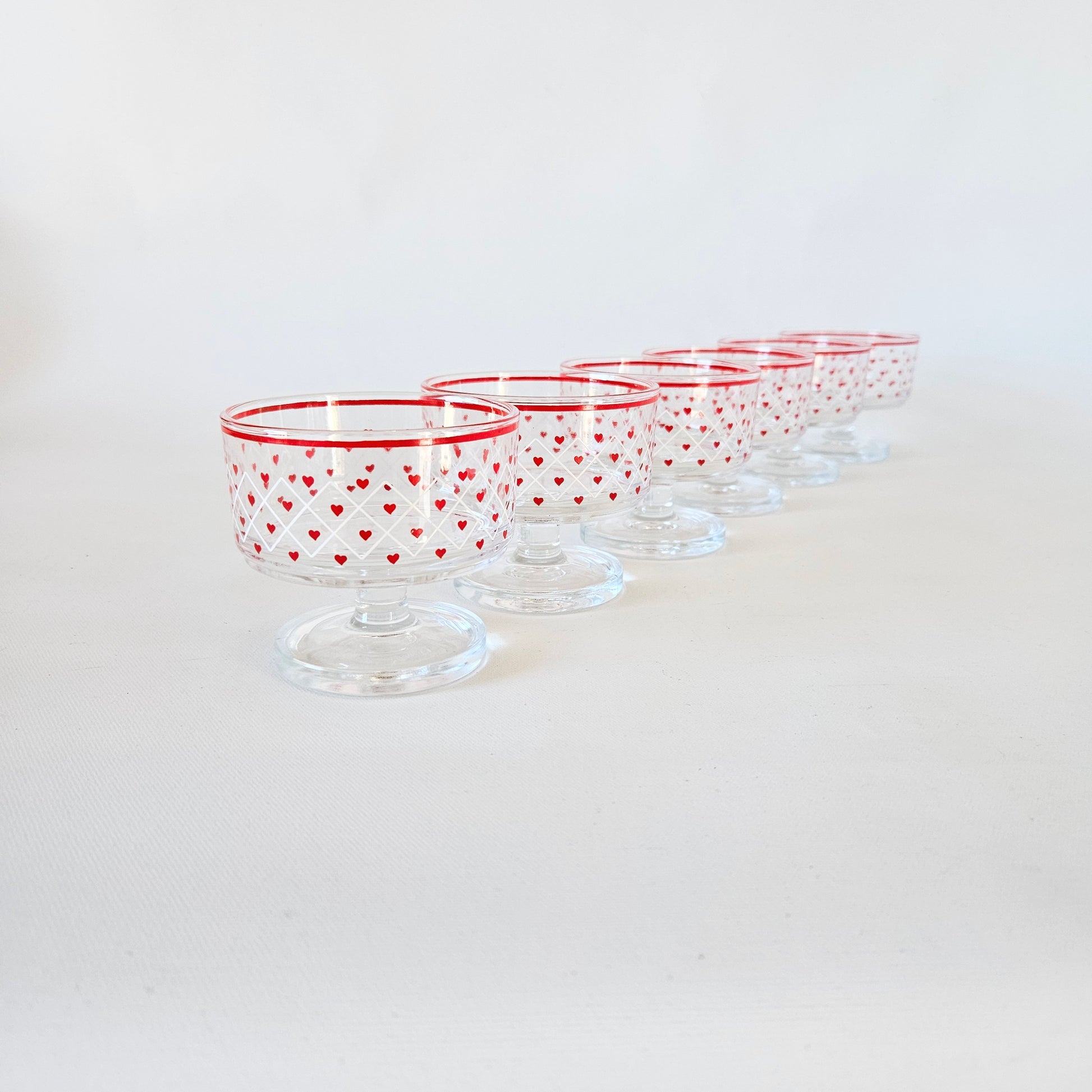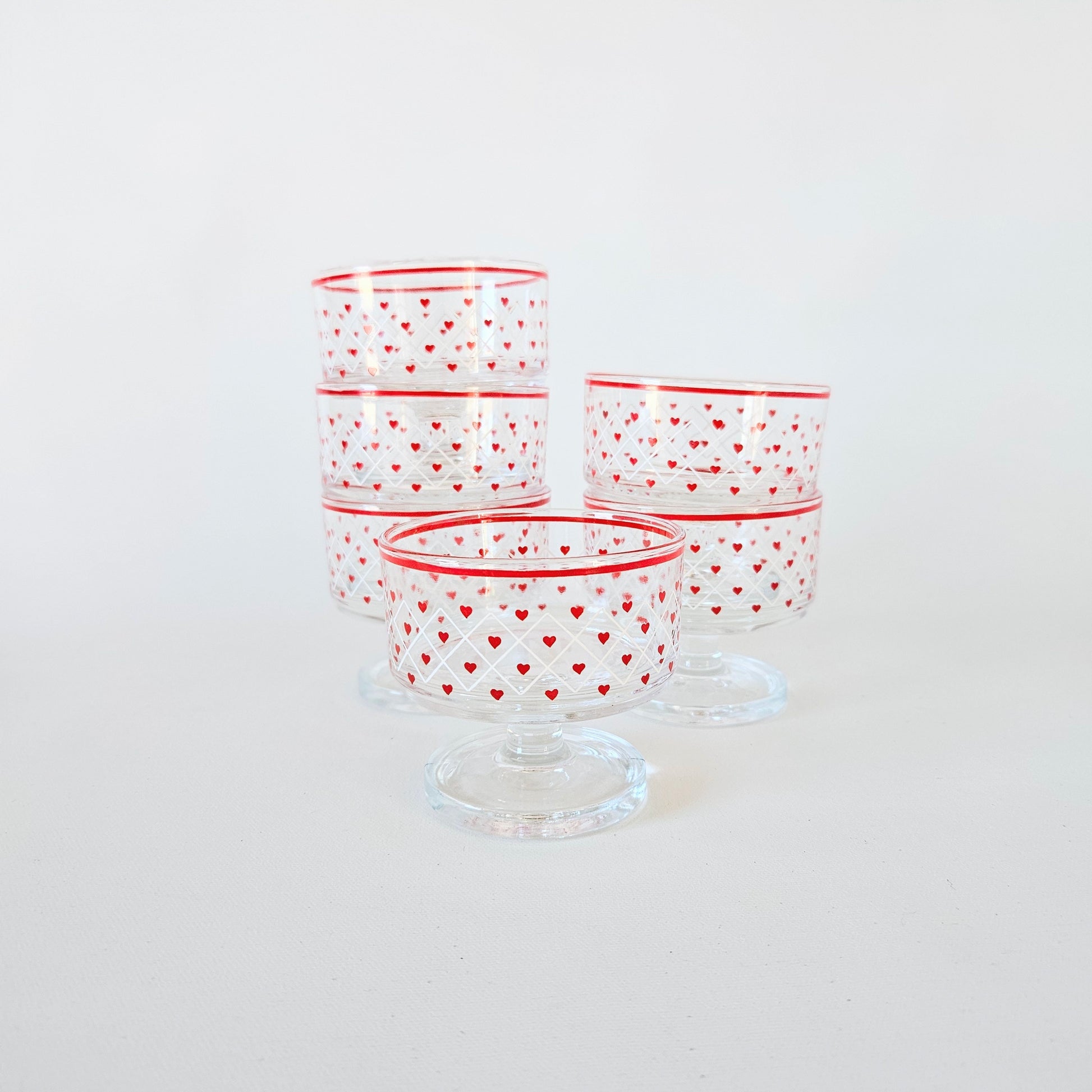 ensemble de 6 coupes à dessert en verre clair avec motif Coeurs rouge