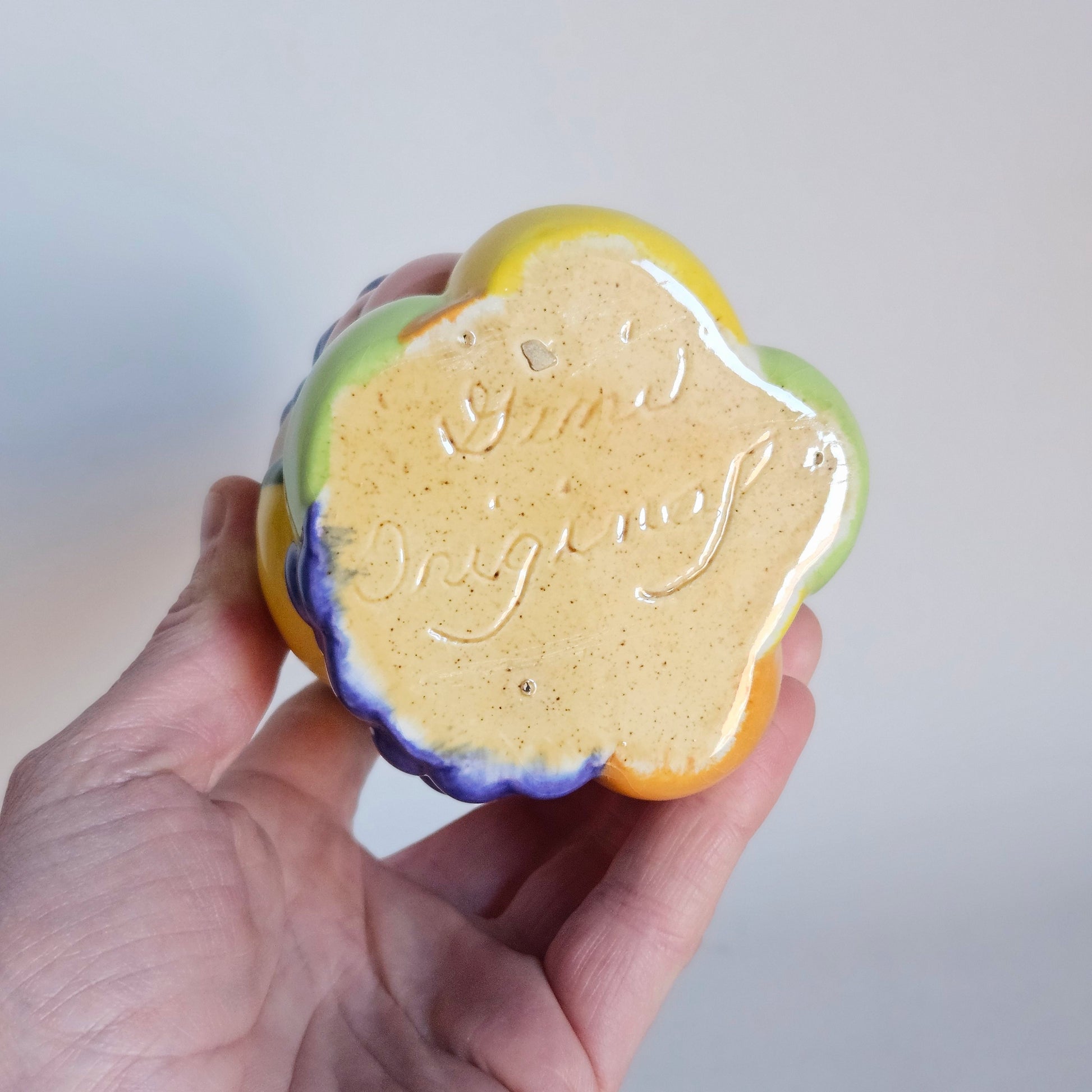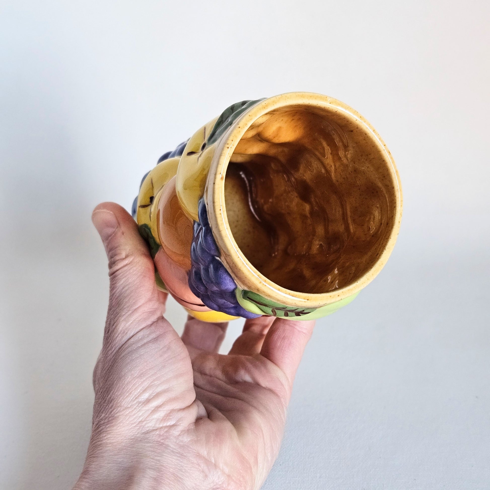 tasse gobelet/pot à crayons ou brosse à dents vintage en céramique multicolore texturée Fruits