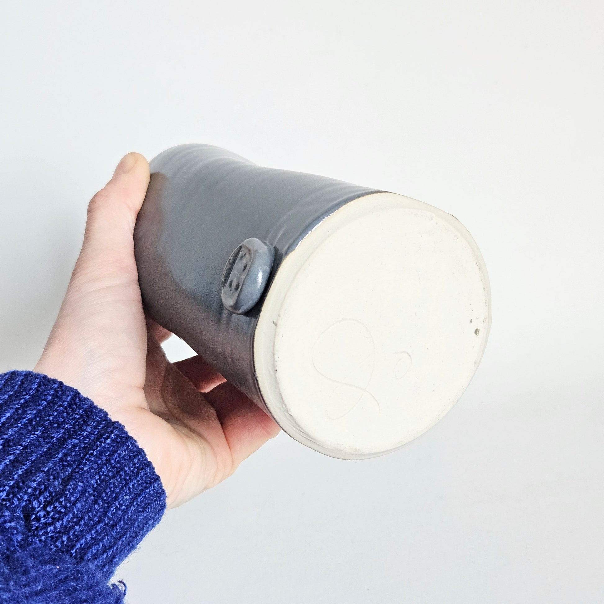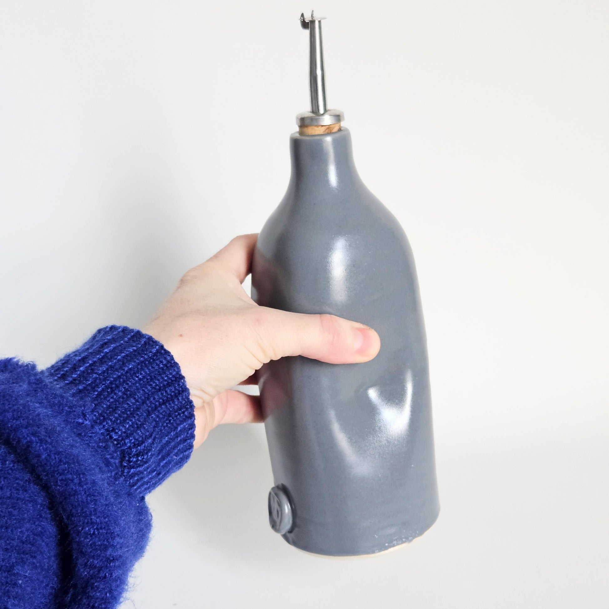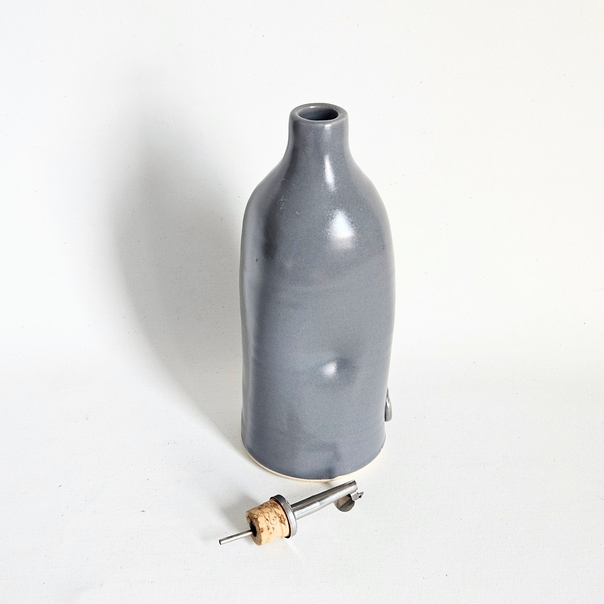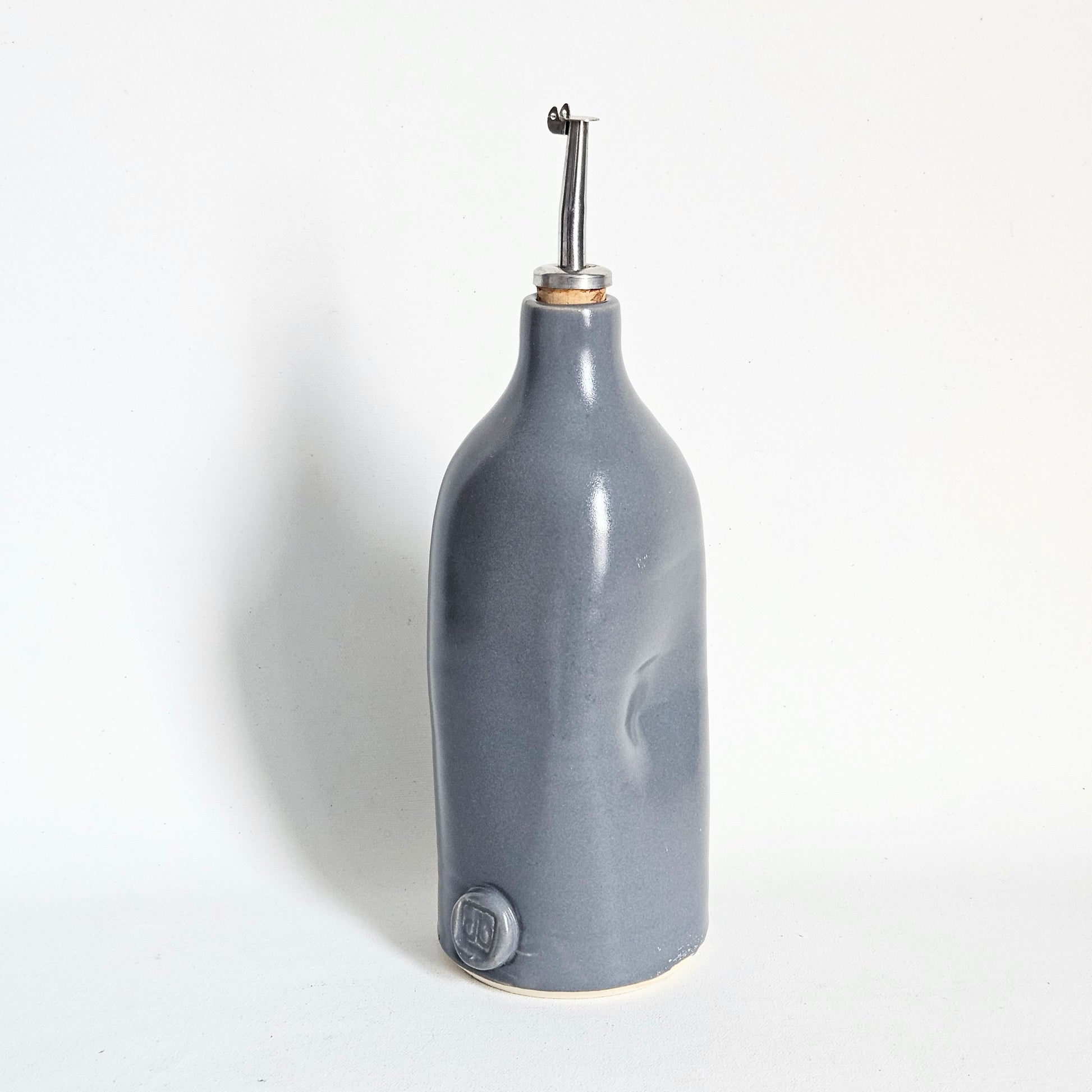 huilier/vinaigrier en céramique artisanale gris, signé Les Ateliers Charlevoix, fait à Ste Irénée au Québec