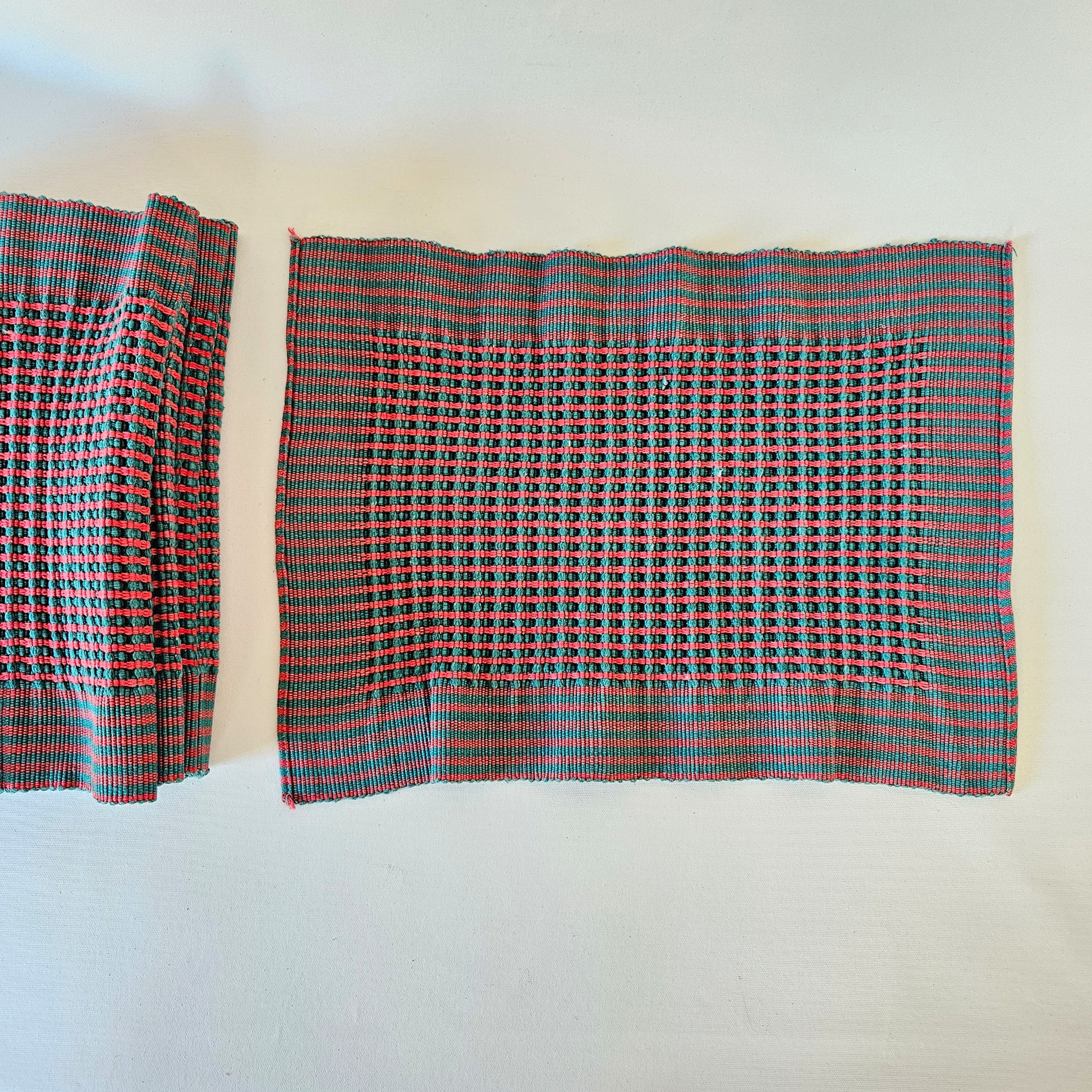 ensemble de 5 napperons tissés seconde-main, en coton rouge et vert forêt