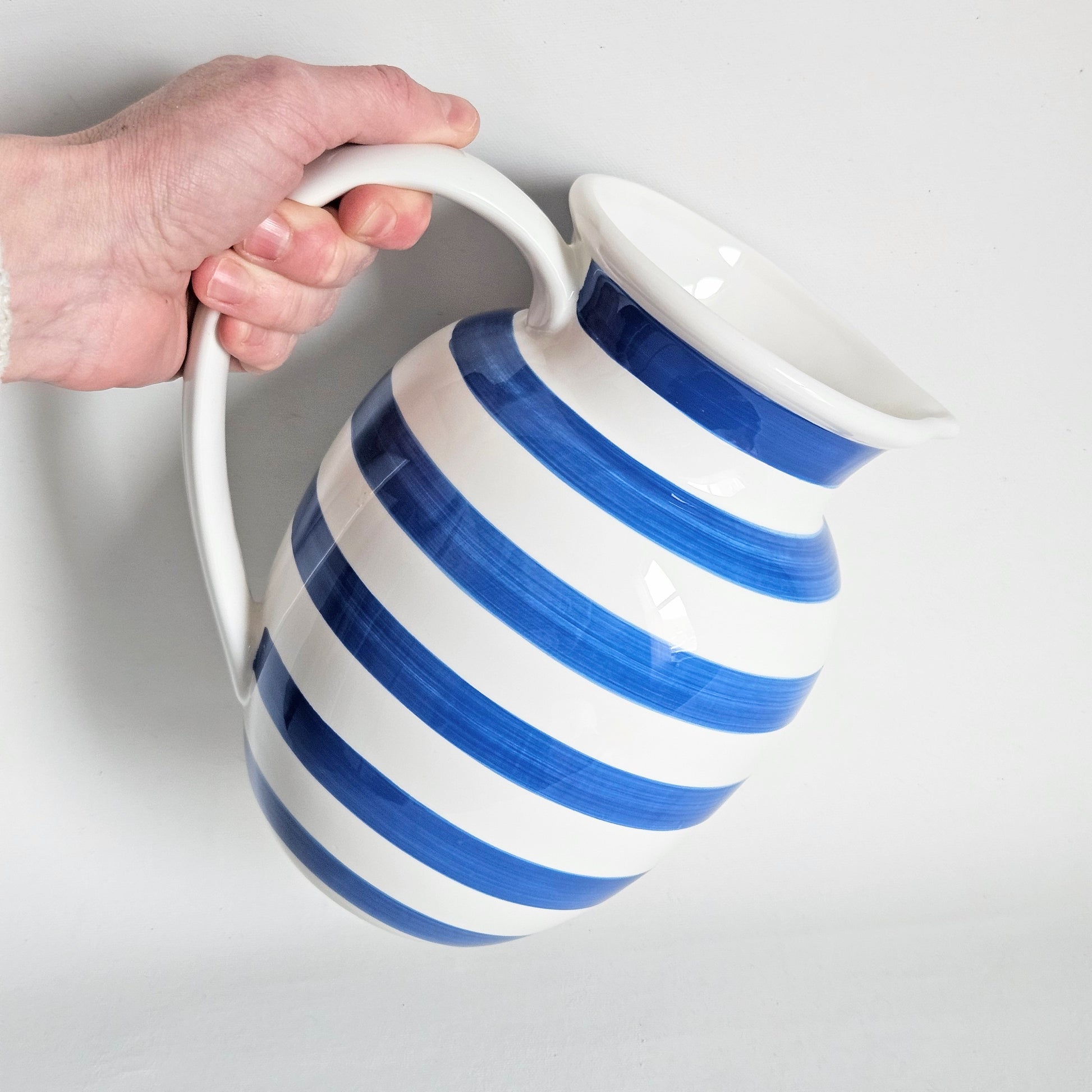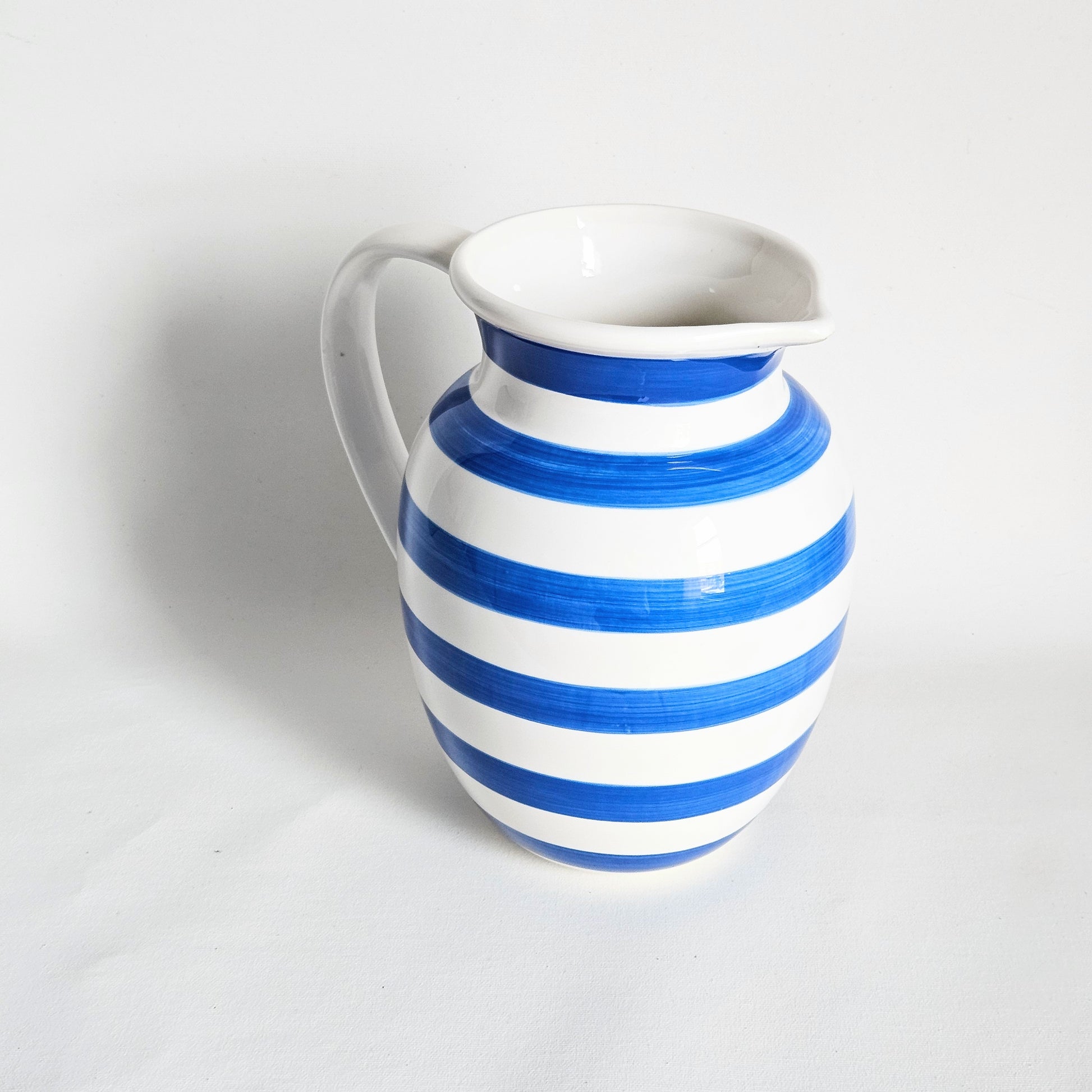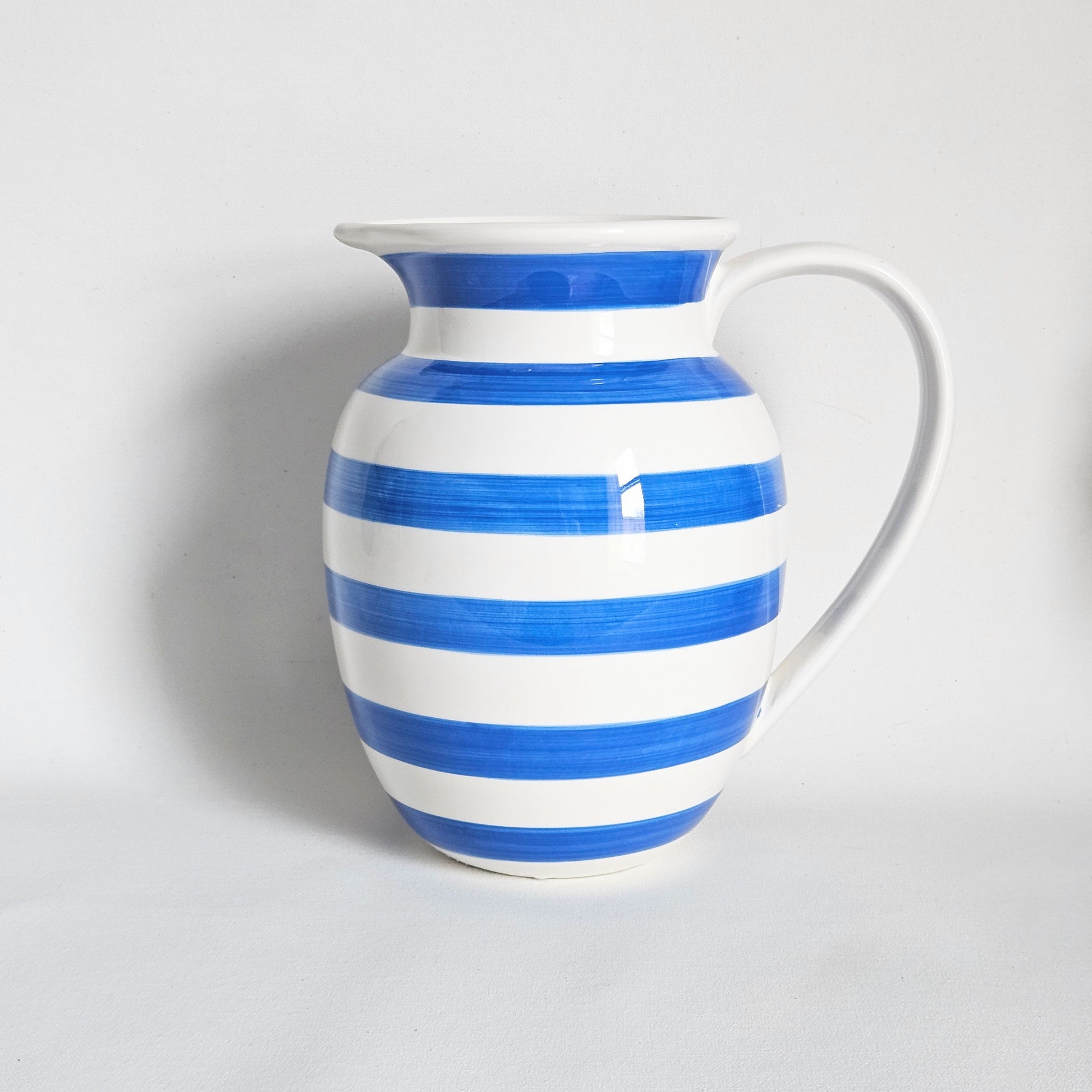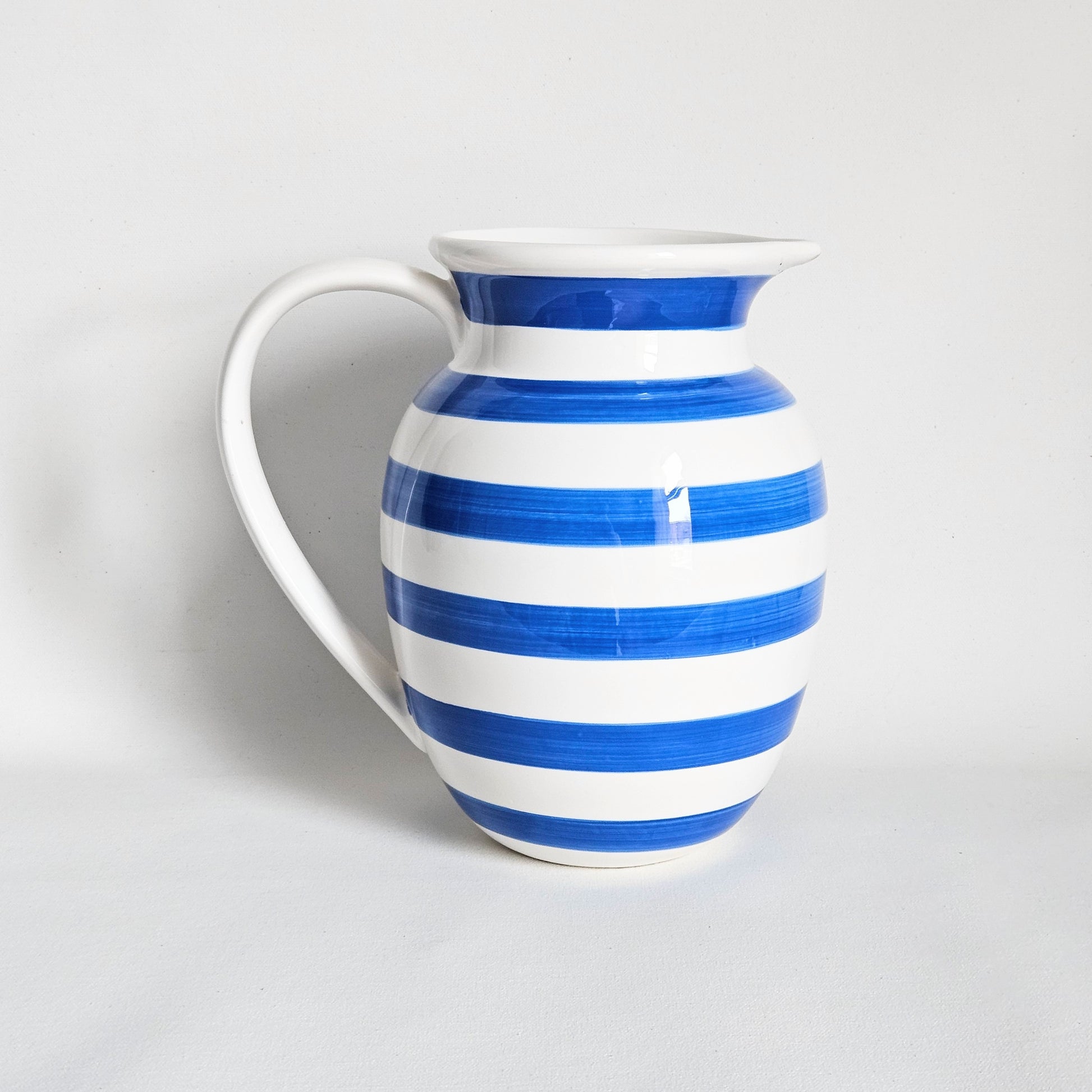 grand pichet seconde main en céramique à rayures bleues, signé Tögo