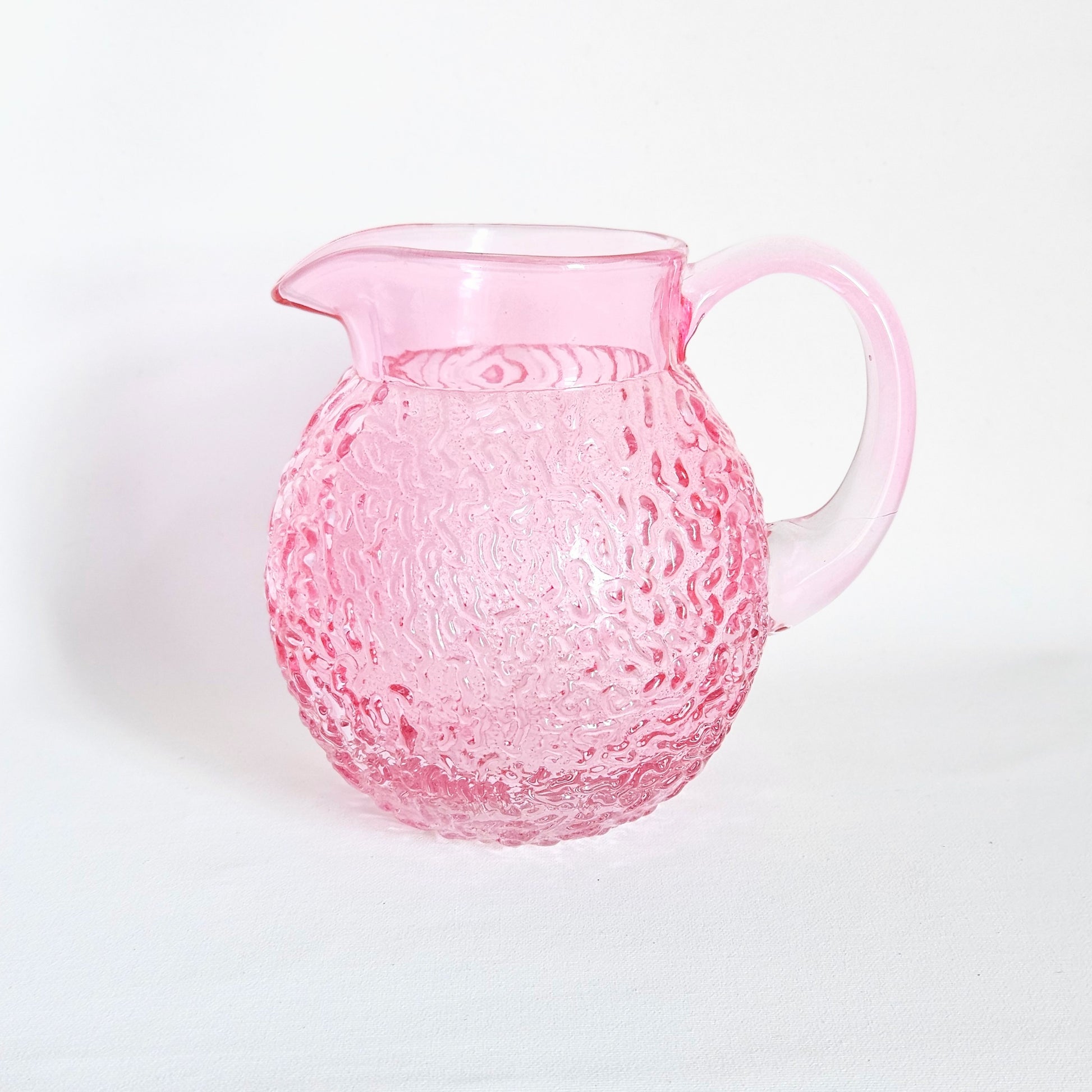 pichet vintage 1980s en verre texturé rose, signé Teleflora