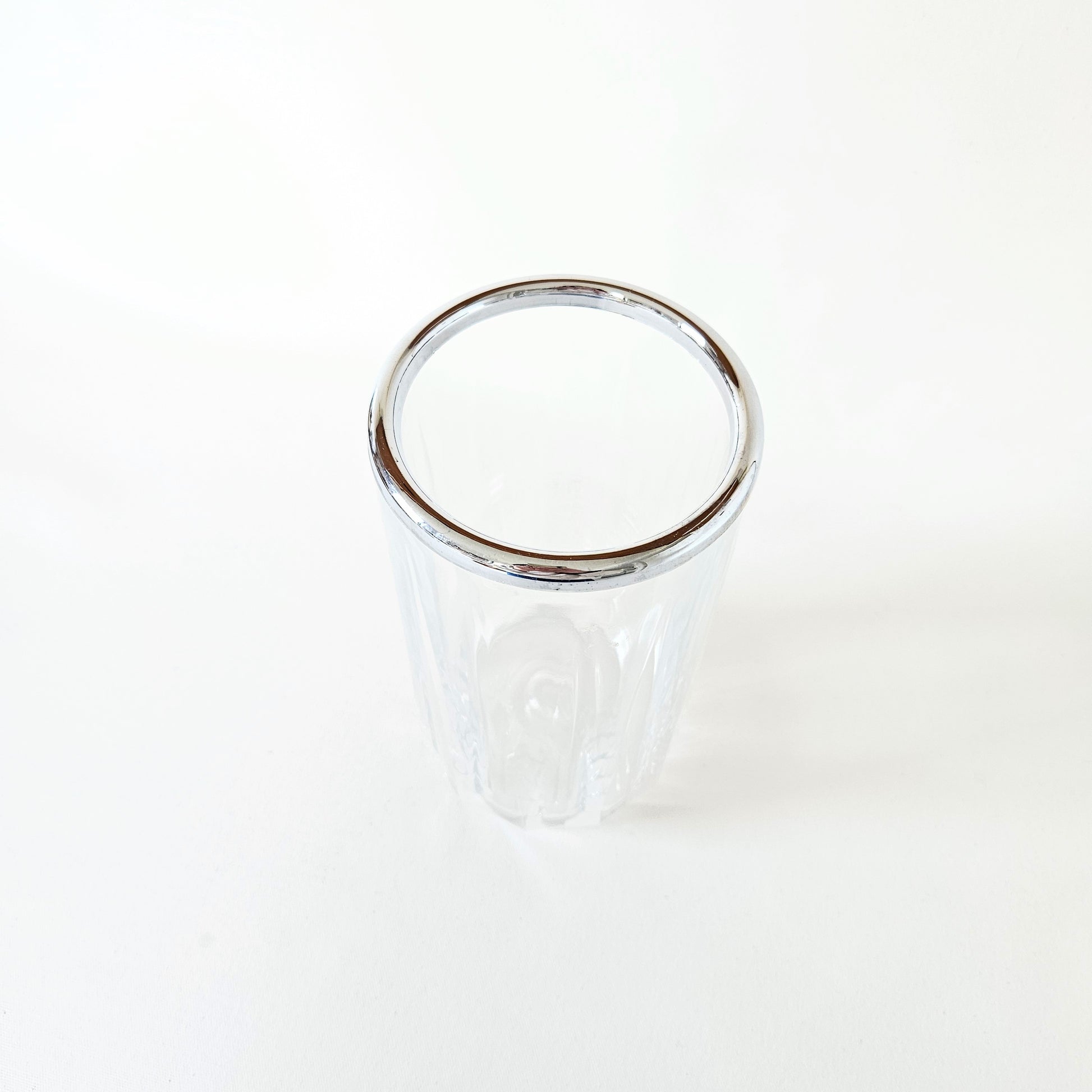 seau rafraîchisseur à bouteille vintage en acrylique transparent et anneau chromé sur le haut