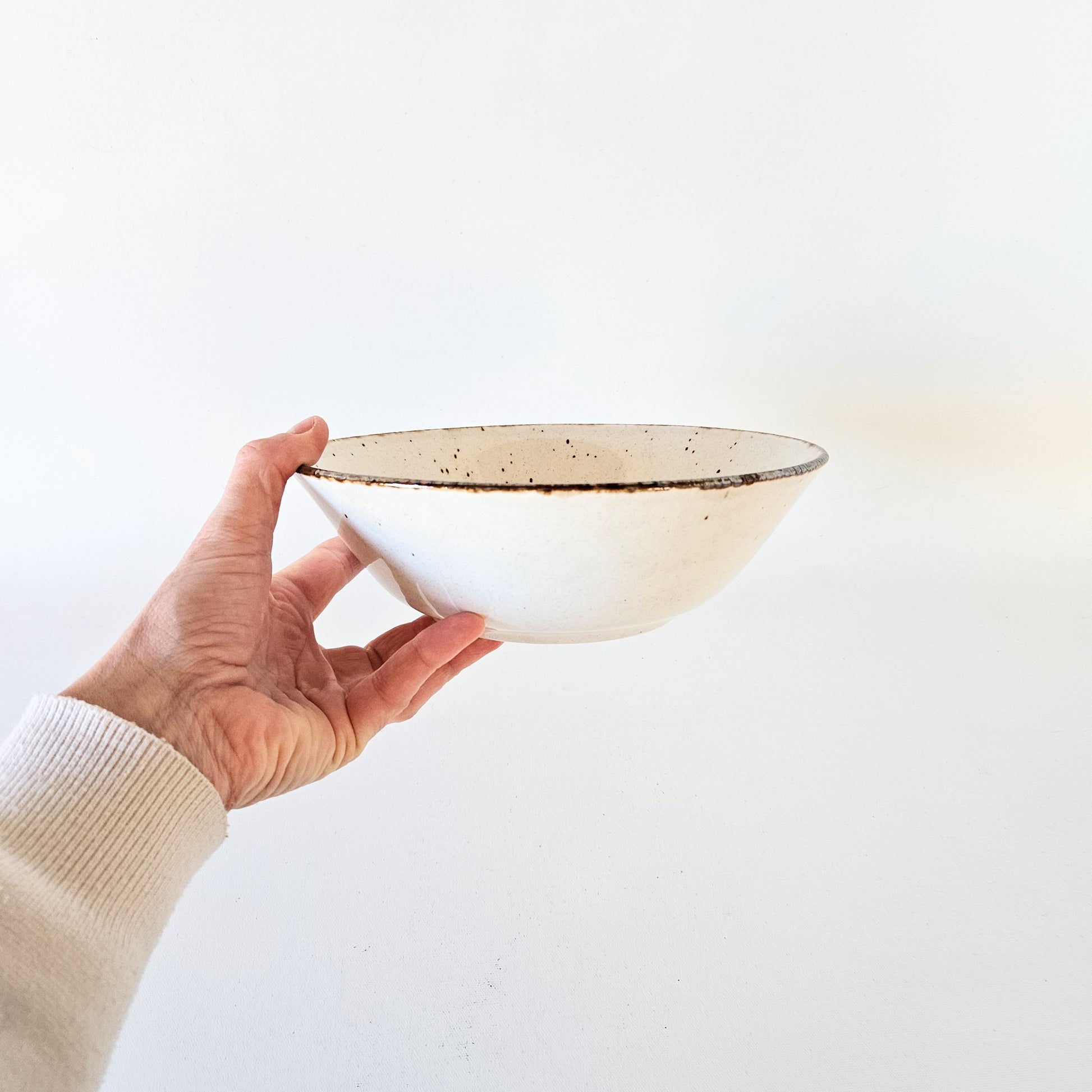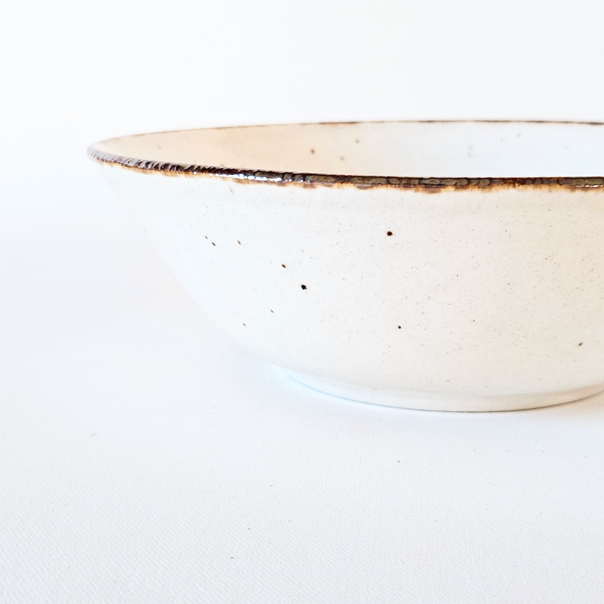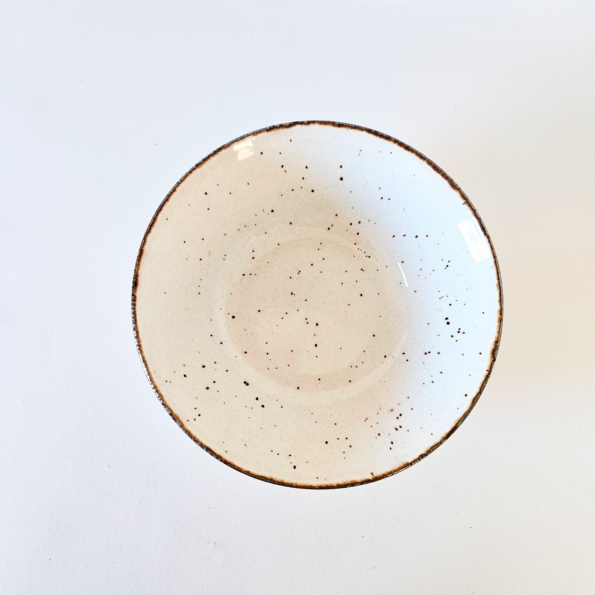 bol - petit saladier en céramique crème picoté et bord brun,