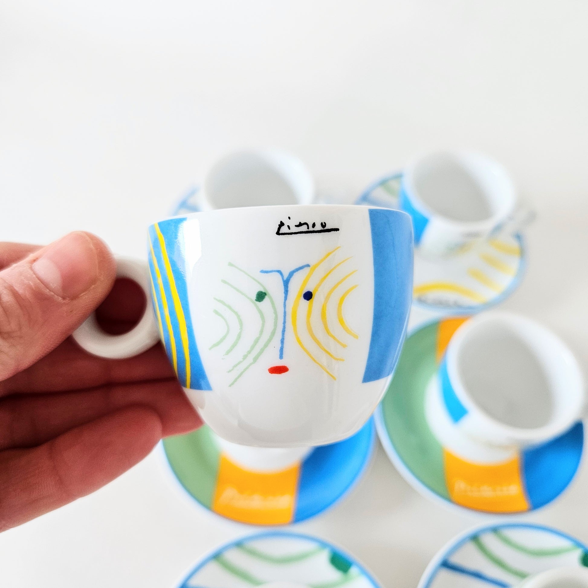ensemble de 6 tasses à espresso en céramique, aux couleurs et oeuvres de Pablo Picasso, produits avec la licence officielle, Succession Picasso, Paris 2007 par MMI