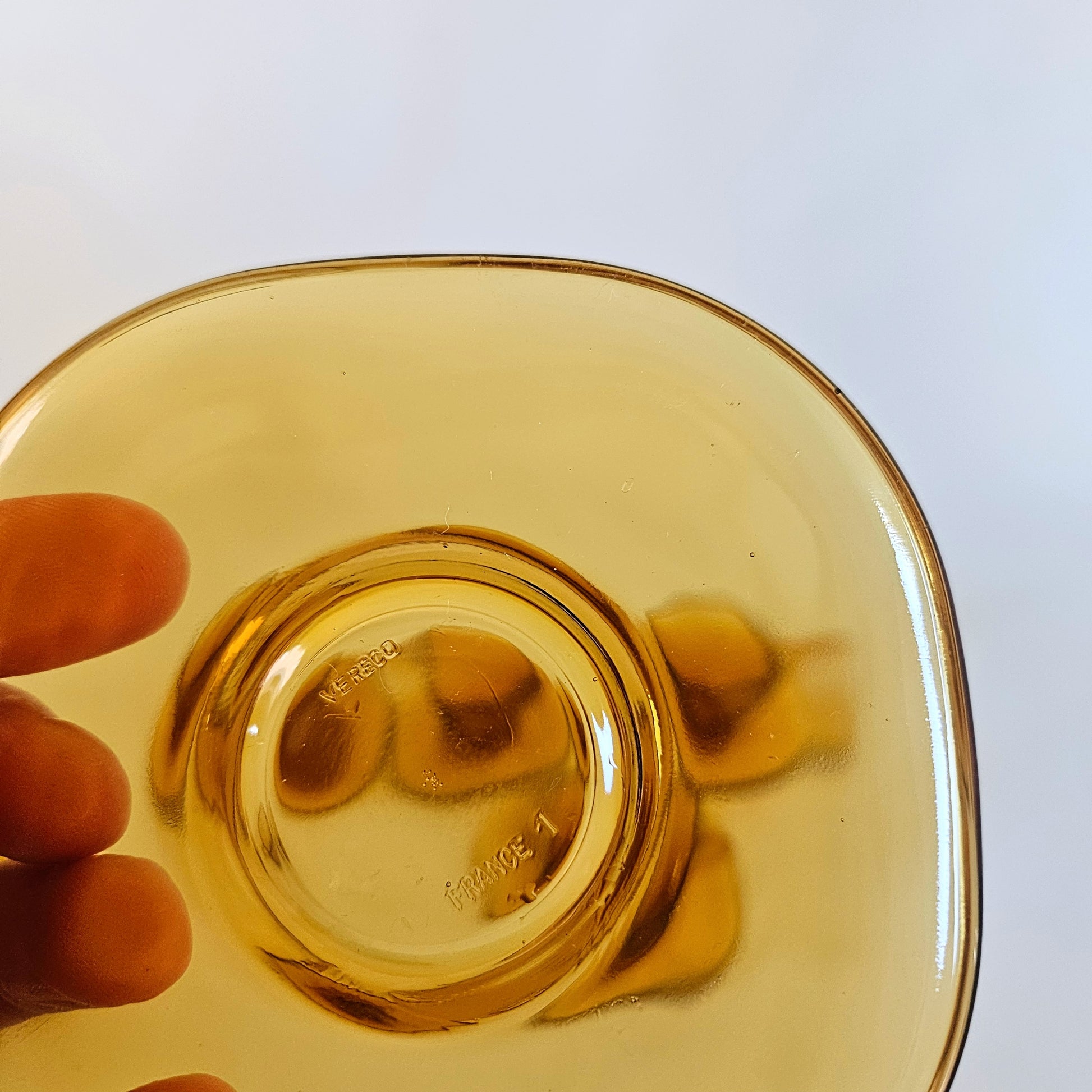 ensemble de 5 tasses à espresso et coupelles en verre trempé jaune ambré, signé Vereco, fait en France