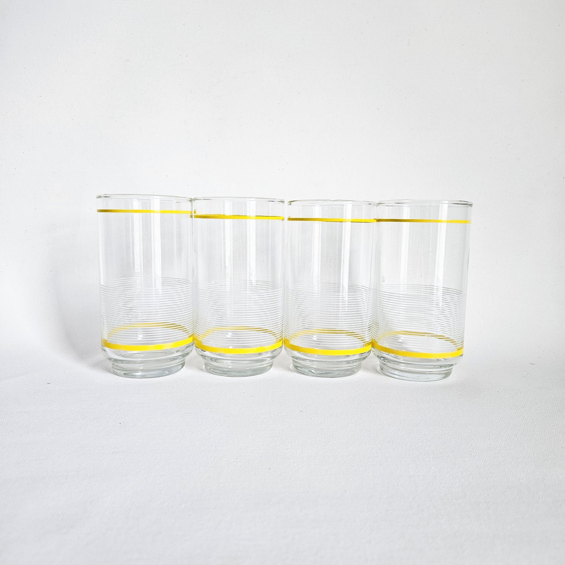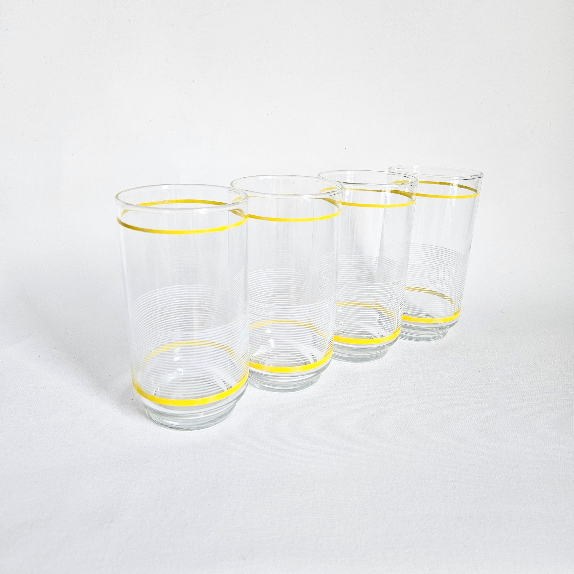 ensemble de 4 verres clair à motifs rayés blanc et jaune, high ball, Libbey