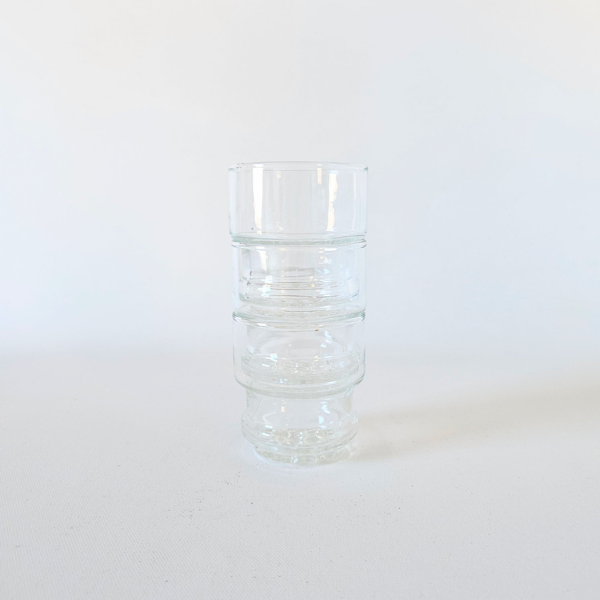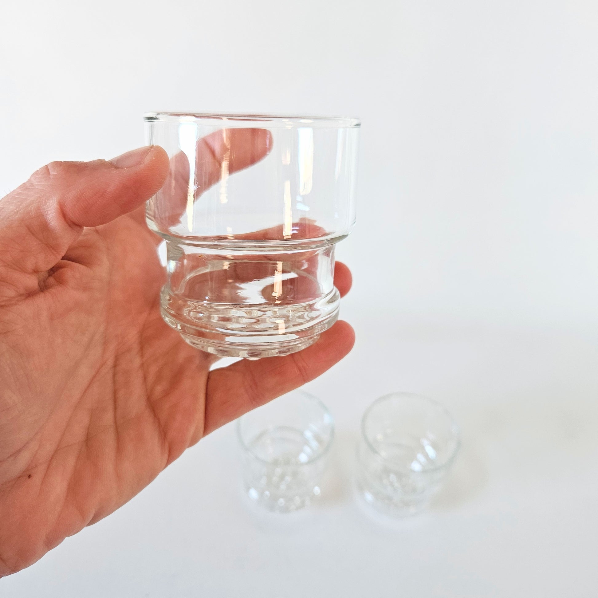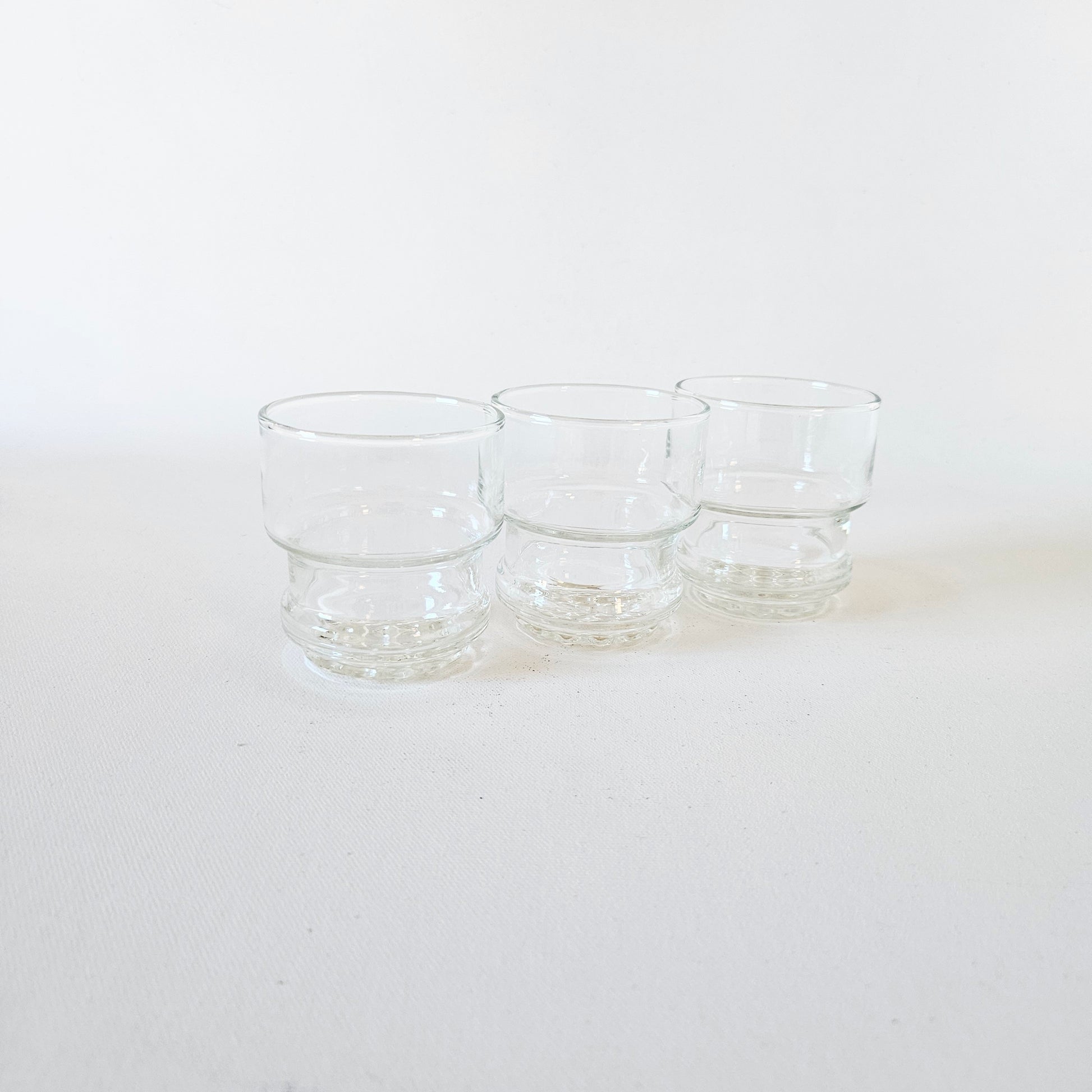 ensemble de 3 petits verres en verre transparent et dessous texturé (petites boules)